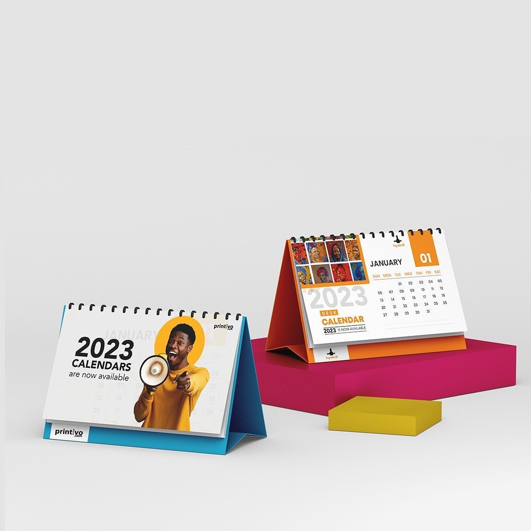 Surprise your clients, family and friends with these beautiful table calendars printing and let them remember you all year round. Upload your A5 table calendar design.