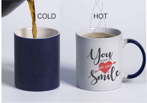 Create Custom Magic Mugs with your photos and messages. Surprise everyone as your mug displays its prints every time you pour hot liquid into it.